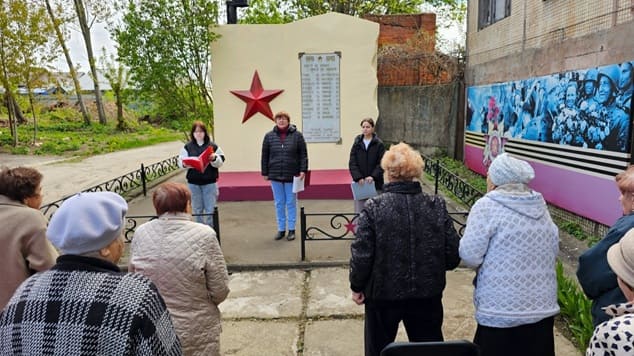 На мероприятии присутствовали дети войны: Федотова Таисия Ивановна, Лопатина Вера Георгиевна и Жарова Нина Алексеевна. Они рассказали о своем военном детстве, вместе с молодежью спели любимую песню «Катюша». В конце мероприятия возложили цветы к памятнику.