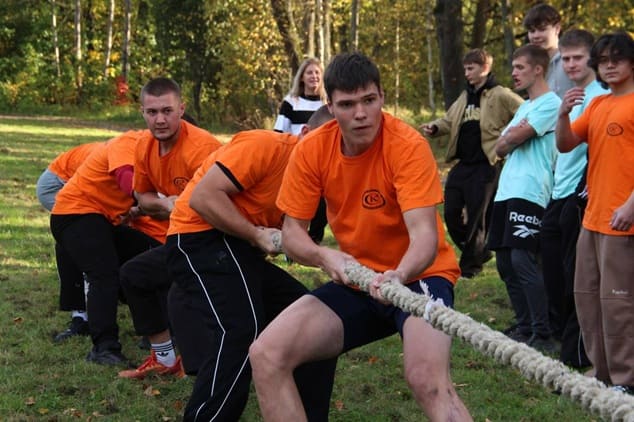 В перетягивании каната наши силачи также заняли 2 место, проиграв только хозяевам – колледжу Щелково.