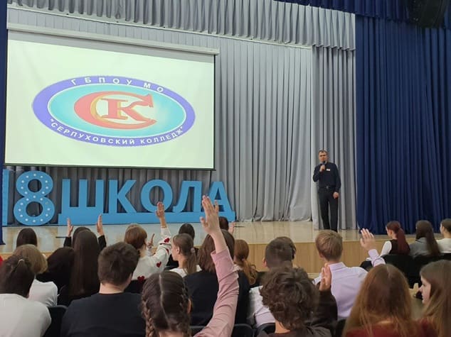 В рамках подготовки к Единому дню открытых дверей ФП «Профессионалитет» национального проекта «Молодежь и дети» преподавателем Серпуховского колледжа Павлушей Виталием Ивановичем и амбассадорами Профессионалитета Гордеевым Антоном и Курош Максимом был проведён Всероссийский классный час на базе МБОУ «Средняя образовательная школа № 18» г.о. Серпухова.