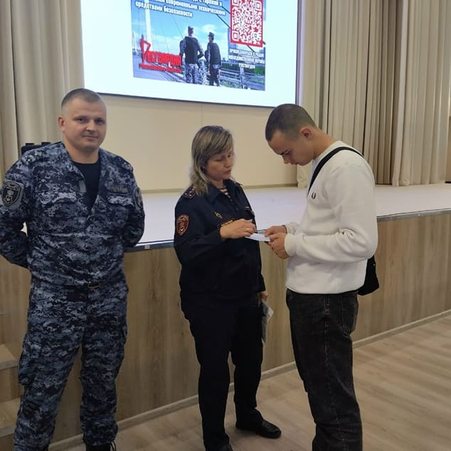 Мероприятие состоялось в корпусе №1 колледжа и было направлено на обсуждение вопросов антитеррористической безопасности и ознакомление молодежи с возможностями трудоустройства в рядах Росгвардии.