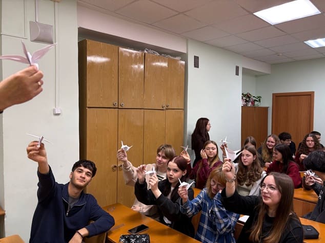 На память о встрече студенты группы 1851 сделали трогательных бумажных журавликов.
