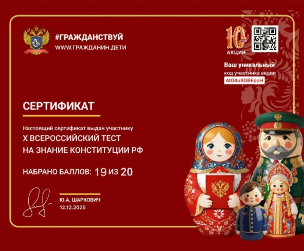 По традиции 12 декабря 2025 года, в честь праздника Дня Конституции Российской Федерации, студенты второго и третьего курса специальности "Юриспруденция" Серпуховского колледжа, а также и первокурсники, обучающиеся на других специальностях, активно участвовали во Всероссийской акции – Х Всероссийский тест на знание Конституции РФ.