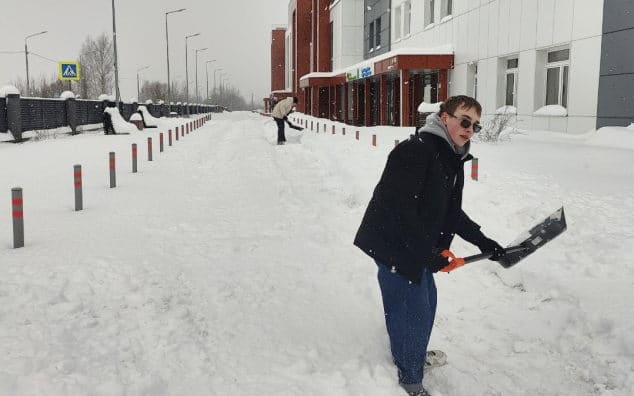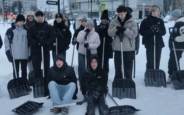 Большая команда студентов и преподавателей работала на территории колледжа. Общими усилиями в кратчайшие сроки были расчищены территории всех учебных корпусов, прилегающие пешеходные зоны и тротуары.