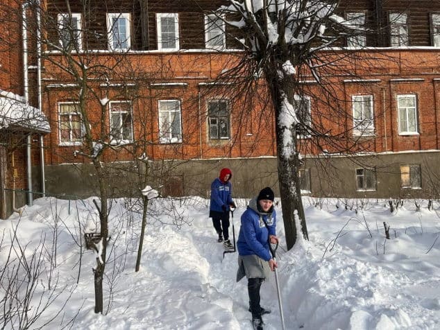 В этот раз наши волонтеры оказали очищали от снега дворовые территории и детские площадки по ул. Ворошилова и в поселке Пролетарский, а также приводили в порядок дорожки парка Питомник.