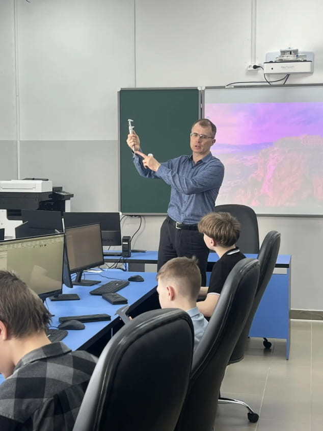 Группу из 14 школьников приветствовал преподаватель специальных дисциплин Павлуша Виталий Иванович. Он познакомил ребят со специальностью 15.02.16 «Технология машиностроения» и рассказал о профессии инженера-конструктора.