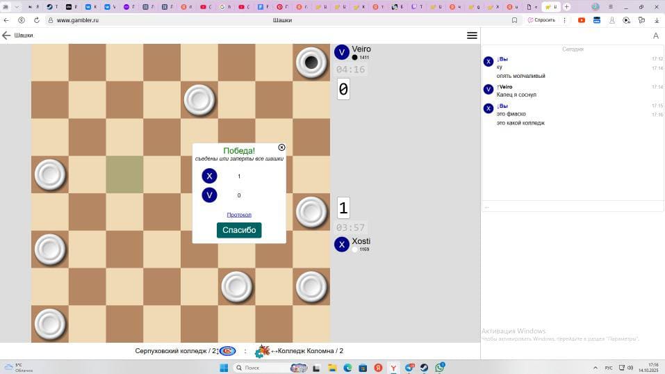 15 октября состоялся турнир по шахматам среди средних и высших учебных заведений Серпухова. В этом году соревнования собрали сильнейших игроков, и команда юношей ССК «Лидер» продемонстрировала достойный результат, доказав свое мастерство.
