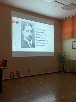 Встречу сопровождала презентация, содержащая буктрейлеры и видеосюжеты, посвященные жизни и творчеству писателя. Библиотекарь рассказала о многогранности его таланта и сложной судьбе. Студенты услышали стихи И. Бунина, отрывки из литературных произведений в исполнении известных артистов. Была представлена выставка книг о Бунине, которые позволят лучше представить эпоху и личность великого человека.