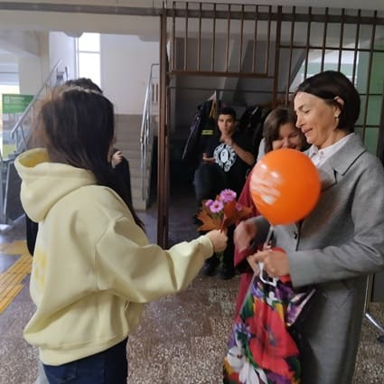 Студсовет колледжа и волонтеры объединения «Доброе сердце» под руководством председателя студсовета Мирзоевой Анастасии и советника директора по воспитанию Трушиной Л.А. организовали поздравления преподавателей с раннего утра. У ворот преподавателей встречали студенты со словами благодарности и теплыми пожеланиями: каждый наставник получил осенний букетик и воздушный шар. Очень приятно было видеть сияющие глаза учителей и улыбки на их лицах.