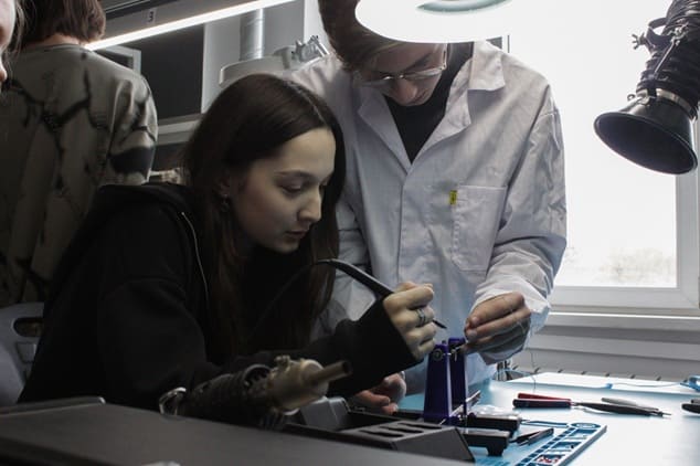 Школьники под руководством преподавателей и амбассадоров специальности «Монтаж, техническое обслуживание и ремонт электронных приборов и устройств» и «Разработка электронных устройств и систем» кластеров «Радиоэлектроника» и «Индустрия робототехники» на профпробах получили полное представление о том, что изучают, чем занимаются студенты, обучающиеся по программе подготовки «Специалист по электронным приборам и устройствам» и «Радиотехник», в чем разница между образовательными программами.