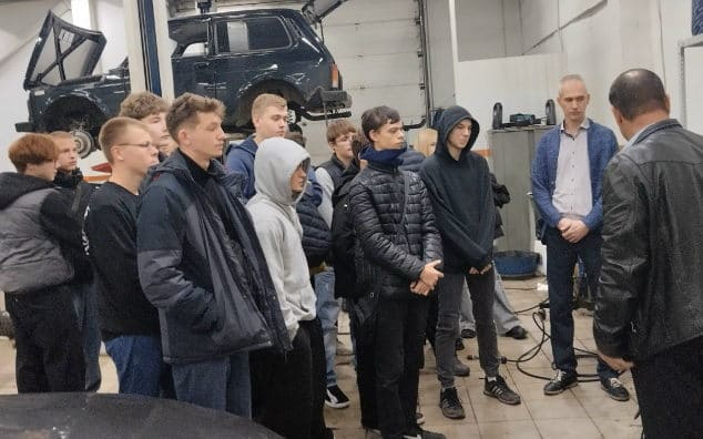 На экскурсии ребятам продемонстрировали зоны приемки автомобилей, ремонта узлов и агрегатов, а также слесарный и кузовной цеха. Специалисты предприятия и преподаватель подробно рассказали о специфике работы и преимуществах выбранной профессии.