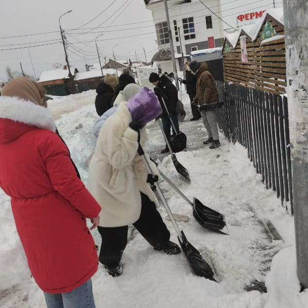 Большая команда студентов и преподавателей работала на территории колледжа. Общими усилиями в кратчайшие сроки были расчищены территории всех учебных корпусов, прилегающие пешеходные зоны и тротуары.