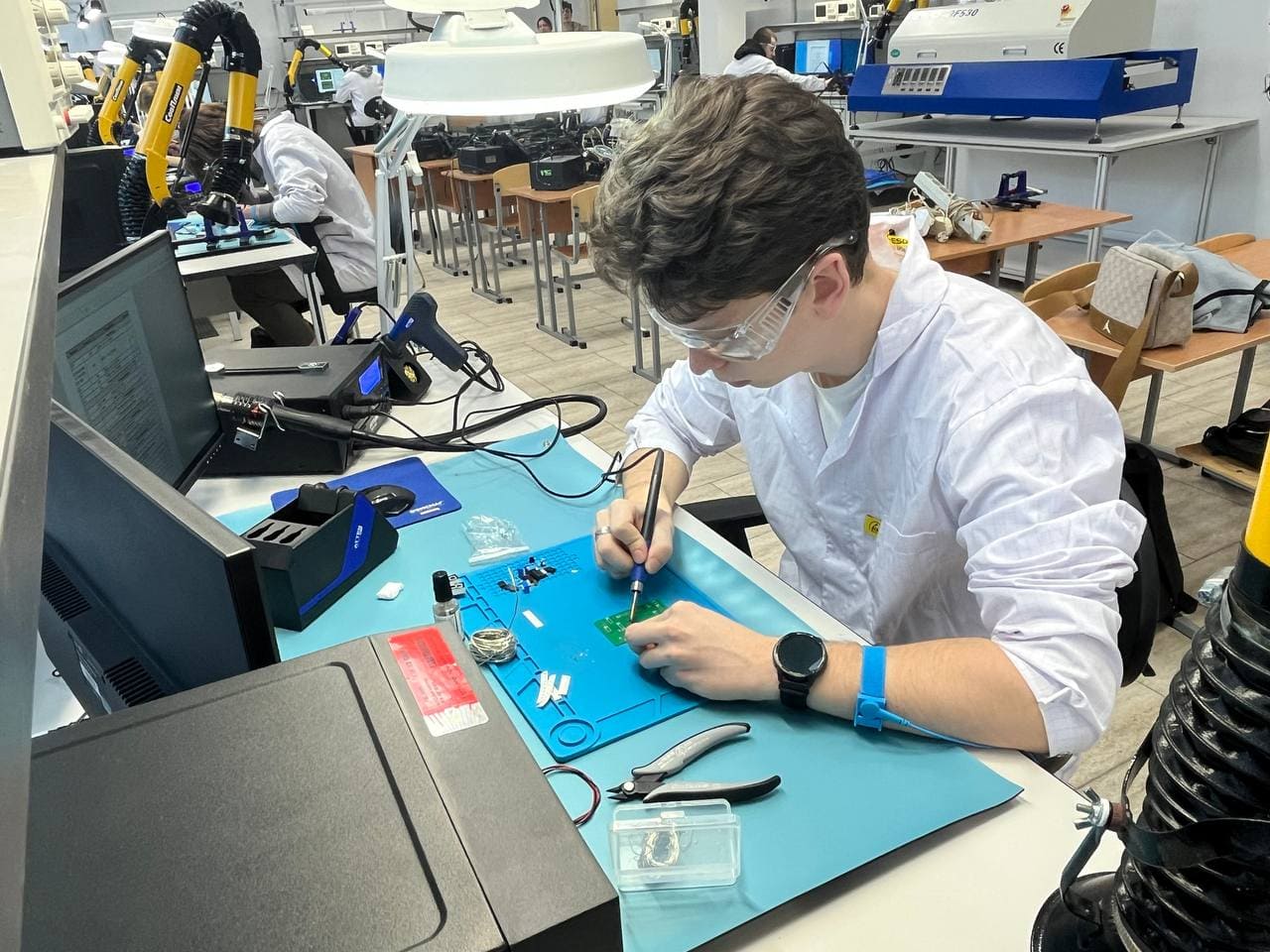 В рамках дорожной карты по подготовке к демонстрационному экзамену студентам было предложено задание по выполнению модуля М1 «Cборка, монтаж и демонтаж электронного прибора и устройства». Преподаватели комиссии Кирюхина Елизавета Дмитриевна, Зубова Валерия Валерьевна, Святова Ирина Владимировна разработали задание, максимально приближенное к заданию этого модуля демонстрационного экзамена. Студентам было отведено 1,5 часа на выполнение электромонтажа и сборки электронного устройства, его отмывки и проверки работоспособности.