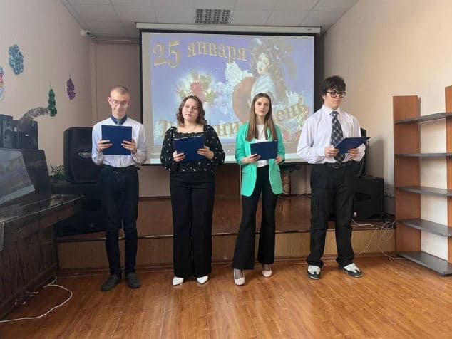 23 января 2026 года в 3 корпусе Серпуховского колледжа прошел студенческий праздник, посвященный Дню Российского студенчества – Татьянин день. Праздник был подготовлен педагогами дополнительного образования Виноградовой Н.С. и Брыкиной Ж.В., студентами студии художественного слова из групп 1641, 1831 и студенческого театра групп 1021, 1751, 1851, а также участниками хореографического коллектива «Талисман» (группа 1731).