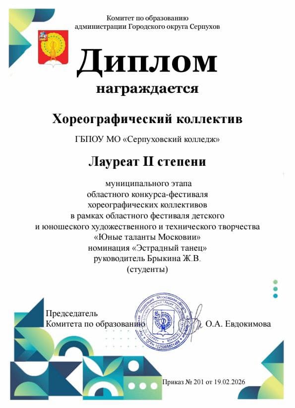 С гордостью сообщаем, что Жанна Викторовна Брыкина, педагог дополнительного образования Серпуховского колледжа, стала лауреатом II степени престижной Всероссийской премии Экспертного совета при Конкурсной организации «Правильное поколение».