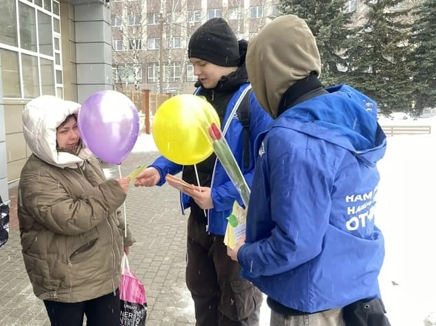 4 марта волонтеры Серпуховского колледжа из группы 1042 с сотрудниками Центра по профориентации и трудоустройству молодёжи и представителями партии «Единая Россия поздравили прекрасную половину Серпухова с наступающим праздником.