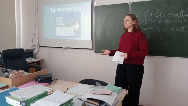 В феврале в первом корпусе ГБПОУ МО "Серпуховский колледж" специалист по работе с молодежью Елена Рудукан провела информационную беседу "Трудоустройство" в рамках проекта "Школа жизни".