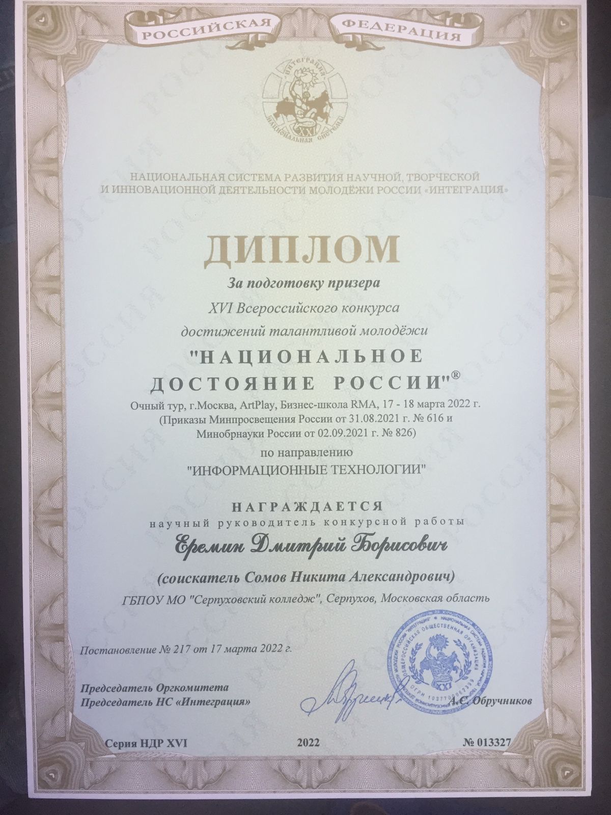| В период с 17 по 18 марта 2022 г., на базе Бизнес-Школы RMA в Москве, состоялся очный тур Всероссийского конкурса достижений талантливой молодёжи «НАЦИОНАЛЬНОЕ ДОСТОЯНИЕ РОССИИ» – XVI Всероссийской конференции обучающихся «НАЦИОНАЛЬНОЕ ДОСТОЯНИЕ РОССИИ». В нем принимали участие победители (лауреаты) Всероссийского заочного конкурса и научные руководители конкурсных работ. Асеев Денис (научный руководитель Чугунов А.В.), Калинаев Максим (научный руководитель Черникова Л.В.), Сомов Никита (научный руководитель Еремин Д.Б.) участвовали в интеллектуальной борьбе и стали победителями заочной части конкурса. В очном туре собрались участники из более 40 субъектов Российской федерации, было представлено более 700 научных работ. В дружественной, рабочей атмосфере, каждый студент представлял результаты своих исследований. Экспертный совет проводил оценку работы, ее актуальность и новизну. Всего работало 6 секций, охватывающих все научные направления современной науки. Студенты колледжей со всей России, общаясь, делились современными тенденциями и методами научных школ, подсказывали решение сложных научных вопросов. Калинаев Максим (научный руководитель Черникова Л.В.), Сомов Никита (научный руководитель Еремин Д.Б.) принимали участие в секции «Информационные технологии». В условиях здоровой научной конкуренции, отвечая на вопросы не только членов экспертного совета, но и участников конференции, достойно провели защиту своих научных работ. Экспертный совет конференции высоко оценил работы наших студентов. Калинаев Максим – победитель по направлению «Информационные технологии», награжден Серебряным знаком отличия «Национальное Достояние». Научный руководитель конкурсной работы Черникова Л.В. за подготовку победителя награждена Золотым знаком отличия «Национальное Достояние». Сомов Никита – Диплом I степени по направлению «Информационные технологии». Научный руководитель конкурсной работы Еремин Д.Б. получил Диплом за подготовку призера по направлению «Информационные технологии». Участие студентов нашего колледжа в научных мероприятия такого высокого уровня открывает новые горизонты в науке и укреплении научного потенциала России. |