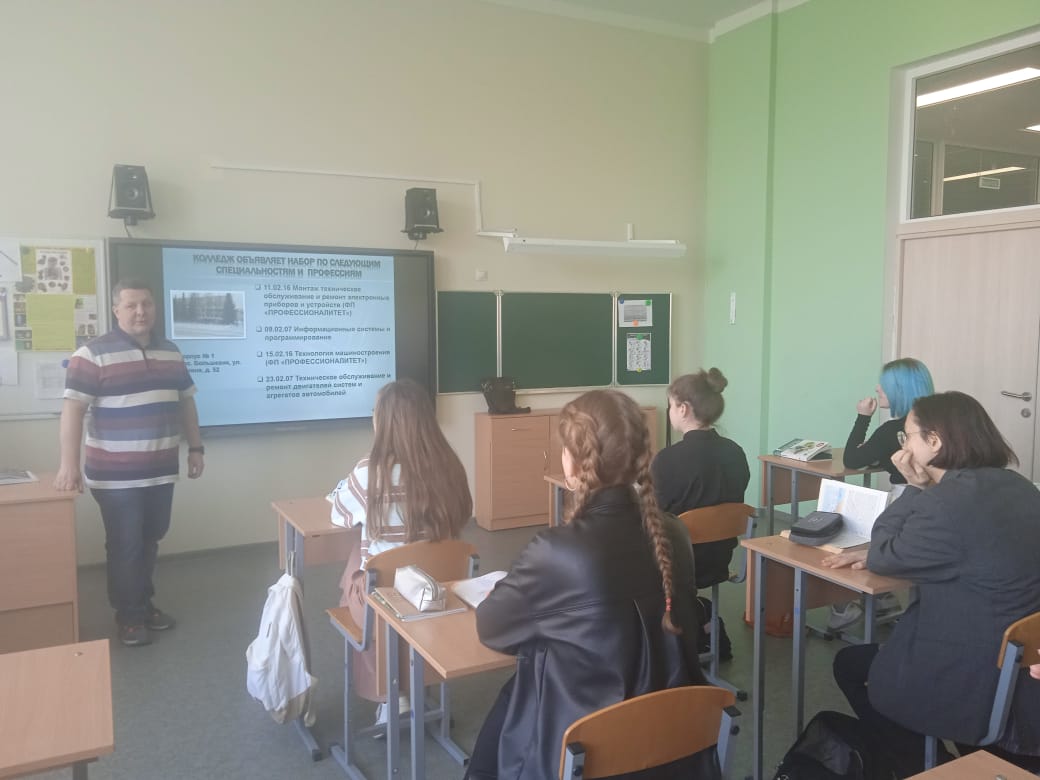 Сегодня, 18 апреля 2023 года, в рамках Единого дня открытых дверей Федерального проекта «Профессионалитет», в МОУ «Дашковская средняя общеобразовательная школа» прошел Всероссийский классный час, на котором состоялась встреча преподавателя ГБПОУ МО «Серпуховский колледж» Ермилова В.А. с обучающимися 9-х классов (60 человек). Обучающимся рассказали об актуальном состоянии развития среднего профессионального образования и перспективах обучения при поступлении на образовательные программы федерального проекта «Профессионалитет». Ребята имели возможность познакомится с особенностями данной программы, преимуществами обучения по специальности 15.02.16 Технология машиностроения. В ходе беседы обучающихся пригласили поучаствовать в Дне открытых дверей Федерального проекта «Профессионалитет», который состоится 22 апреля 2023 года в ГБПОУ МО «Серпуховский колледж» (корпус 3) в 10.00, где они познакомятся с материально-технической базой колледжа и пройдут профессиональные пробы.