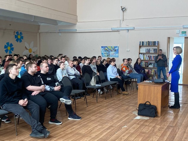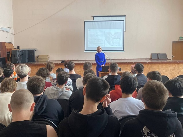 Инженер по качеству Козловская Виктория Петровна подробно рассказала ребятам о вакансиях на производстве, об условиях труда и социальных гарантиях. Студенты с интересом отнеслись к теме карьерного роста, перспективам профессионального развития, а также к возможности трудоустройства на неполную рабочую неделю.